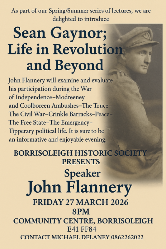 Borrisoleigh Historical Society is now taking up 2026 memberships €20. This can be forwarded to Michael Delaney or Marie Hackett.