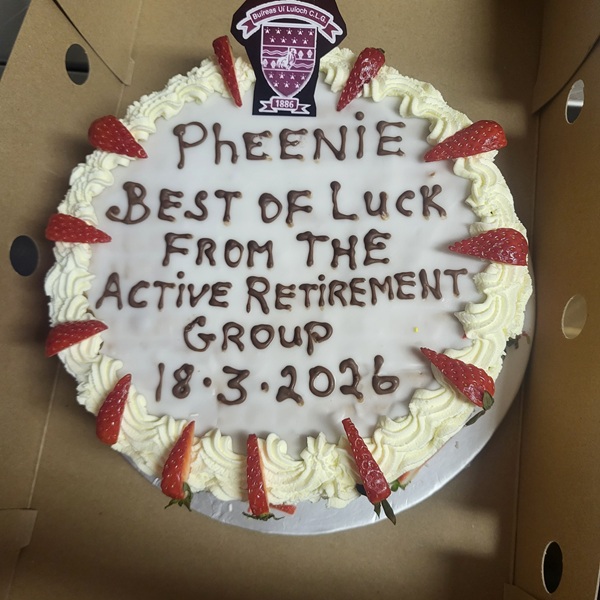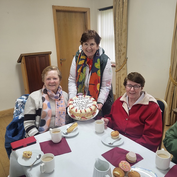 We had a lovely gathering in the parish centre on Wednesday 18th March to say a final farewell to our dear friend Pheenie Molloy who is leaving Borrisoleigh to move closer to her family in England, there was a great turn out & we would like to thank Kathleen Fahy for supplying confectionery & a beautiful cake for her friend Pheenie. We wish Pheenie all the best in this next chapter of her life.