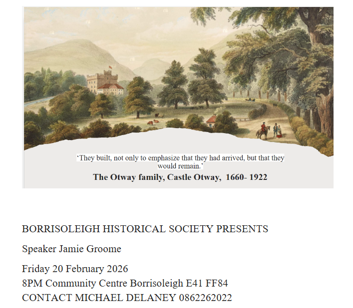 Borrisoleigh Tidy Towns is regrouping for the Spring and will meet in the Square on the 1st Saturday of each month at 10.30am. The next meeting is the 7th February. All are welcome to come along.